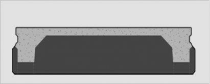 The structural strength of the overall unit is derived from 2 no. reinforced precast concrete beams, one on each site of the unit. The unit is manufactured by pouring concrete onto profiled polystyrene (EPS). The EPS provides a complete layer of insulation under the floor, broken only by the bearing points (stools):