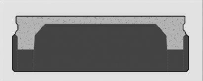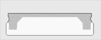 The structural strength of the overall unit is derived from 2 no. reinforced precast concrete beams, one on each site of the unit. The unit is manufactured by pouring concrete onto profiled polystyrene (EPS). The EPS provides a complete layer of insulation under the floor, broken only by the bearing points (stools):